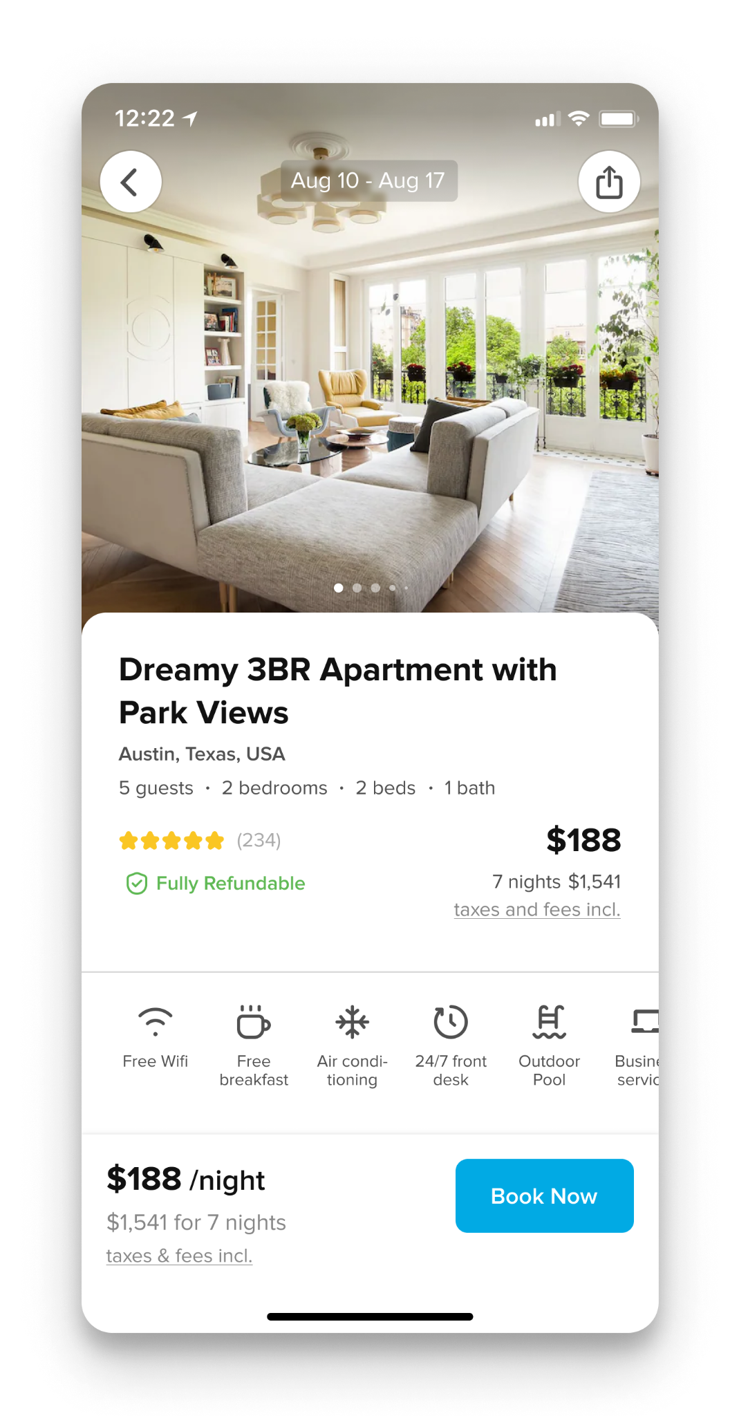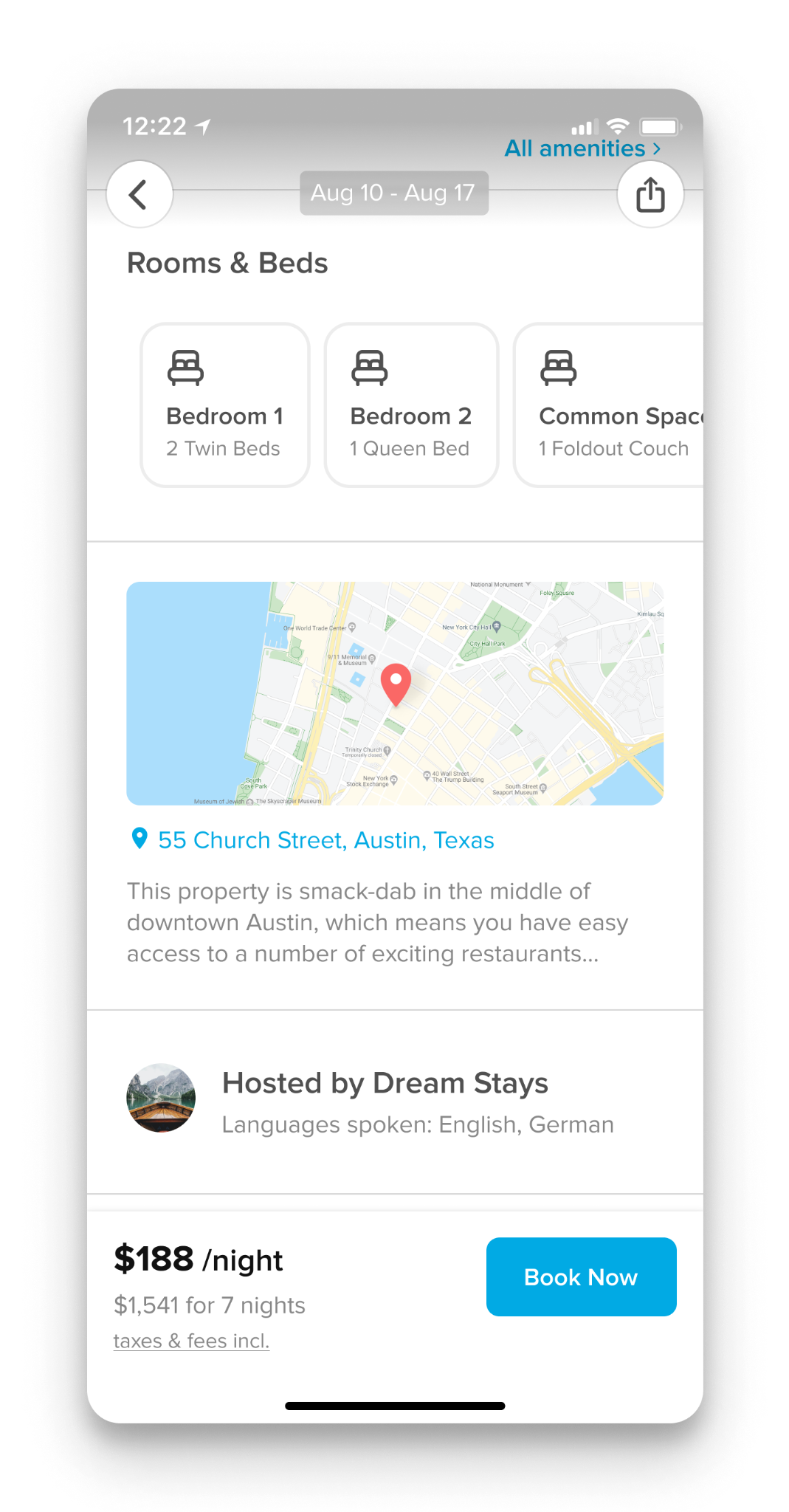 From here users can assess every home’s images, ratings and reviews, room & bed count, cancellation and checkin policies, and a transparent price breakdown.