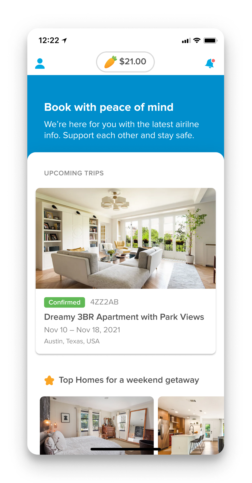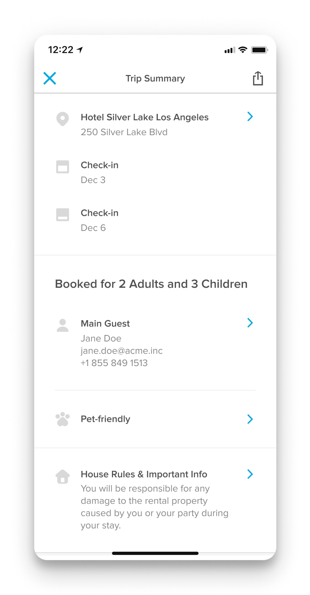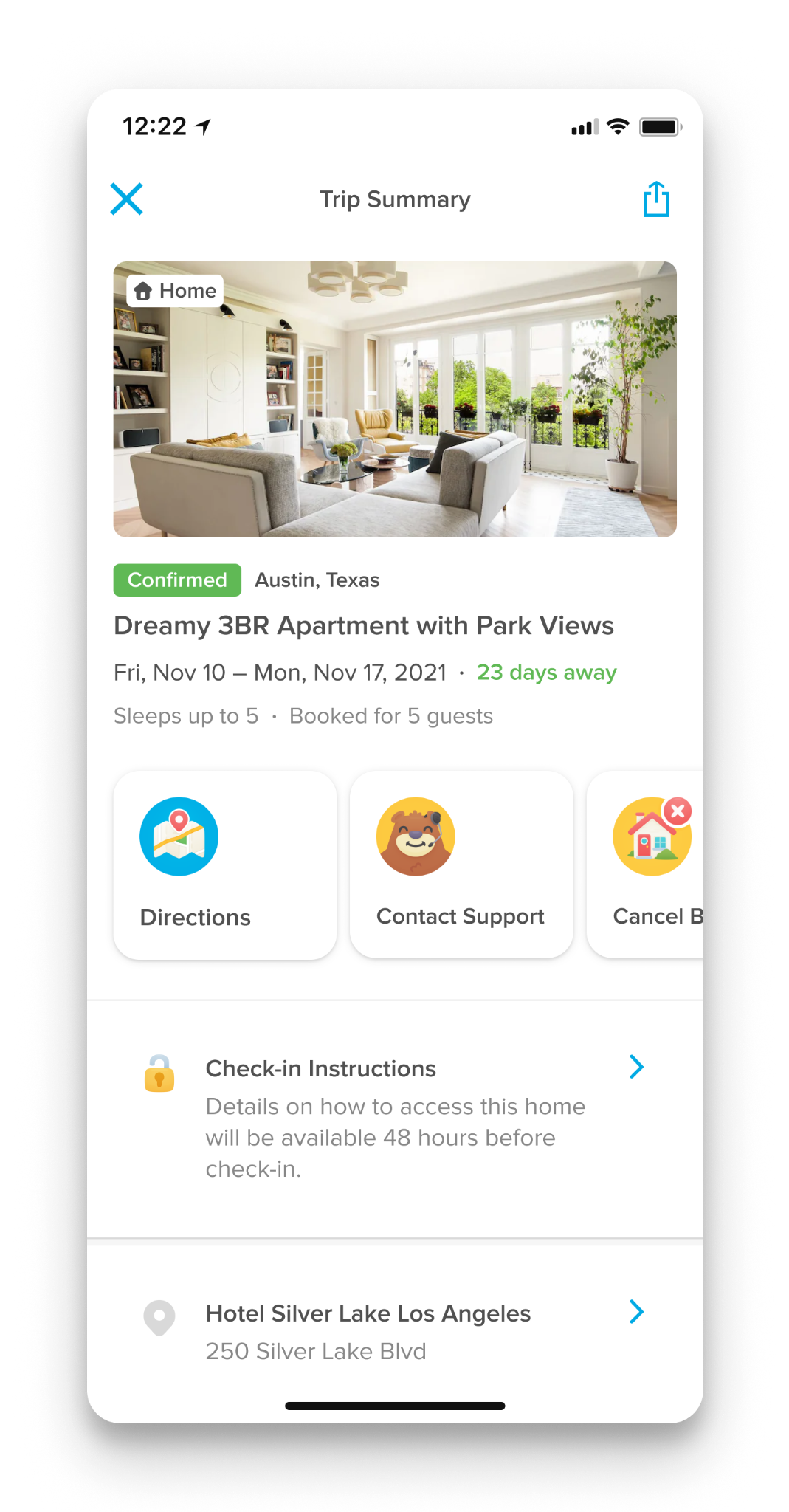 After a user books a home, they can easily access it from the Hopper app. Quick actions make trip modifications simple and easy.