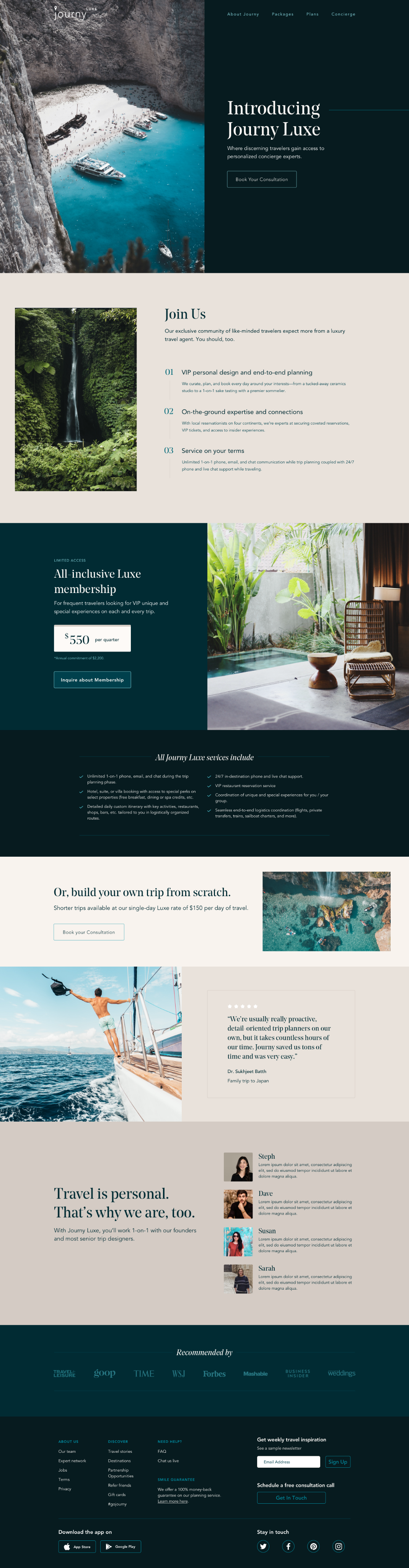 I was brought onto the Journy team to take over as their first Creative Director, first to overhaul all marketing efforts. I developed fresh art direction and a design system that could translate from marketing to product, to emote a bespoke and editorial lifestyle feel to everything. Within a year, I designed and launched more than 25 landing page concepts to test successsful narrative and conversion.