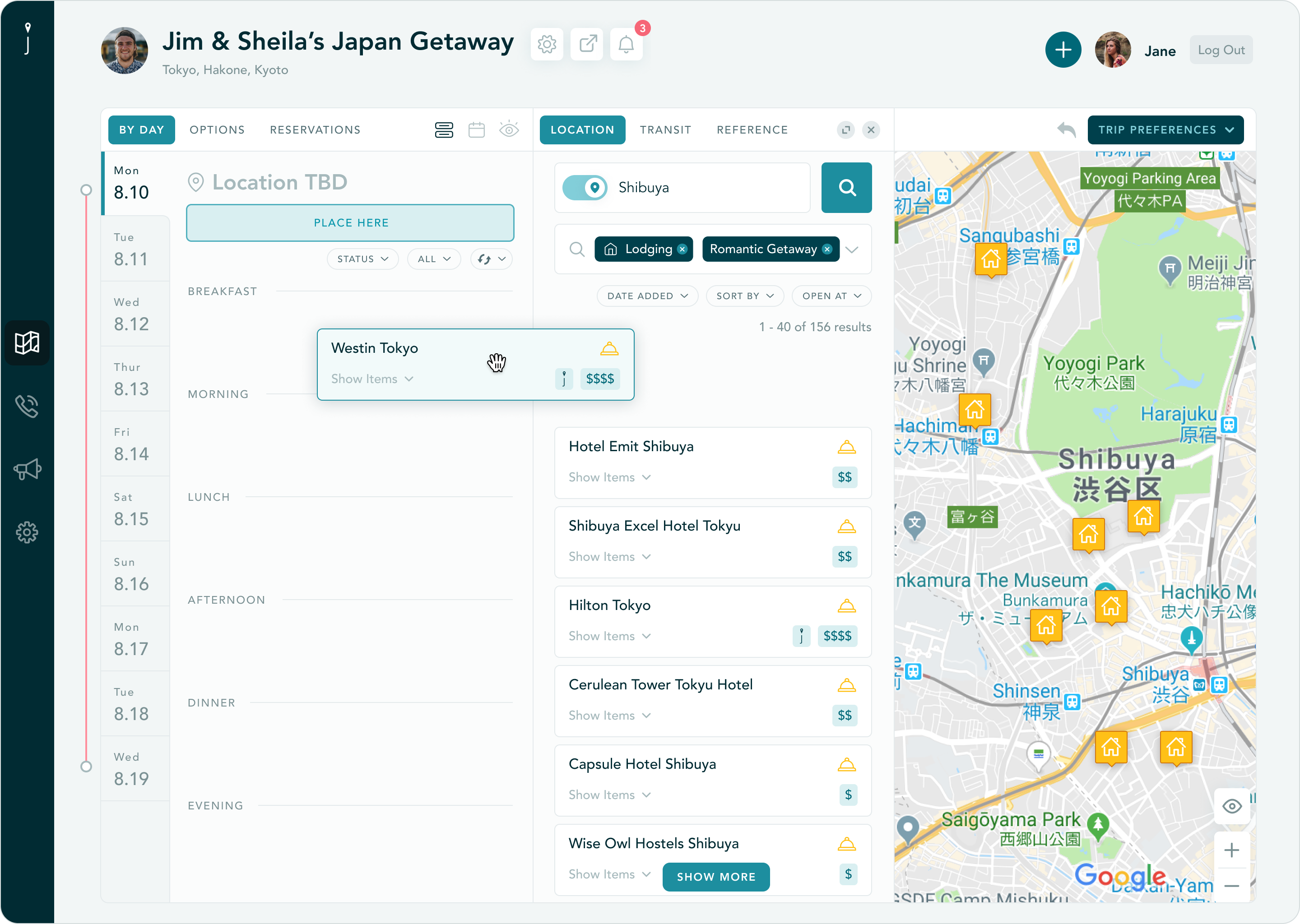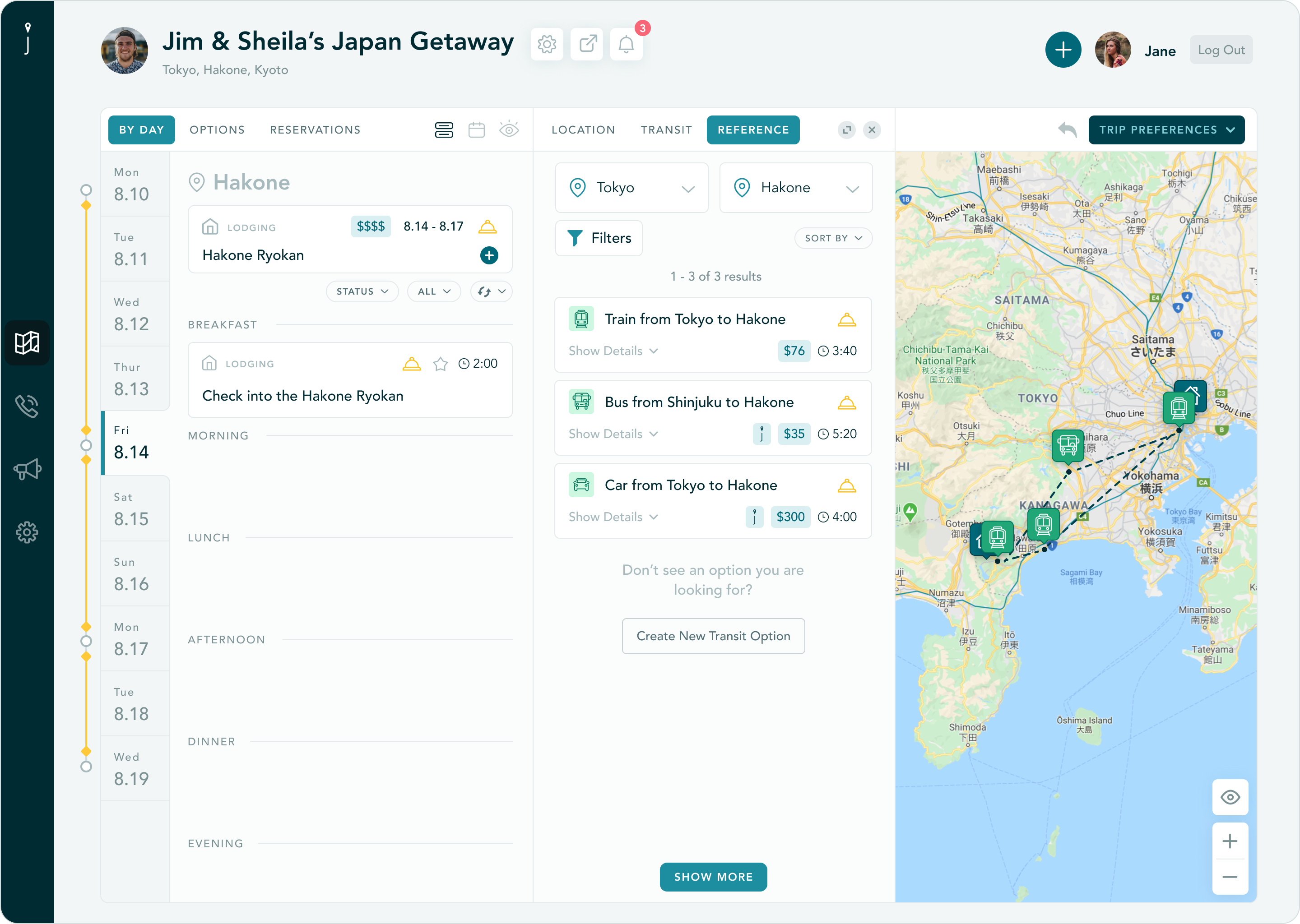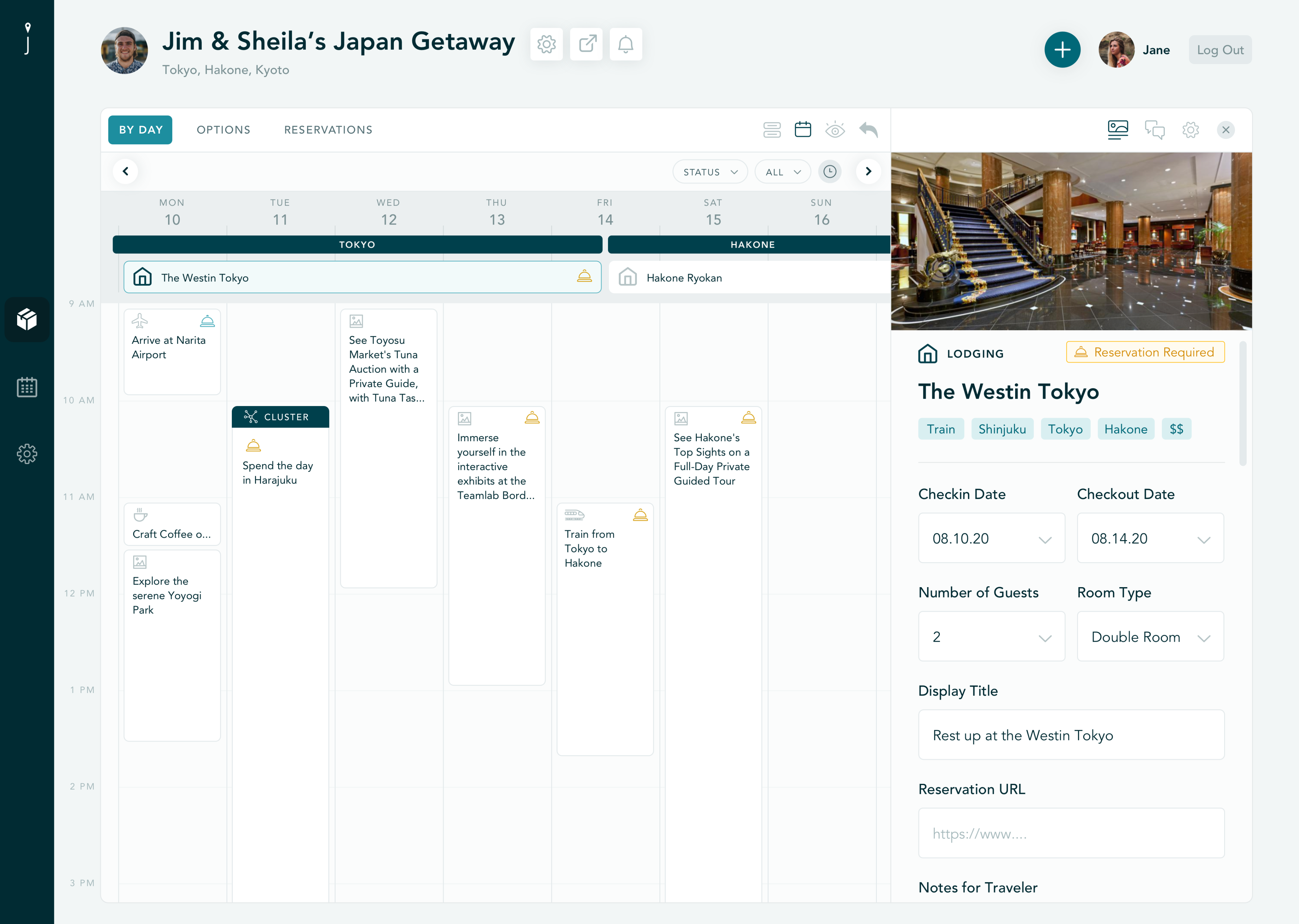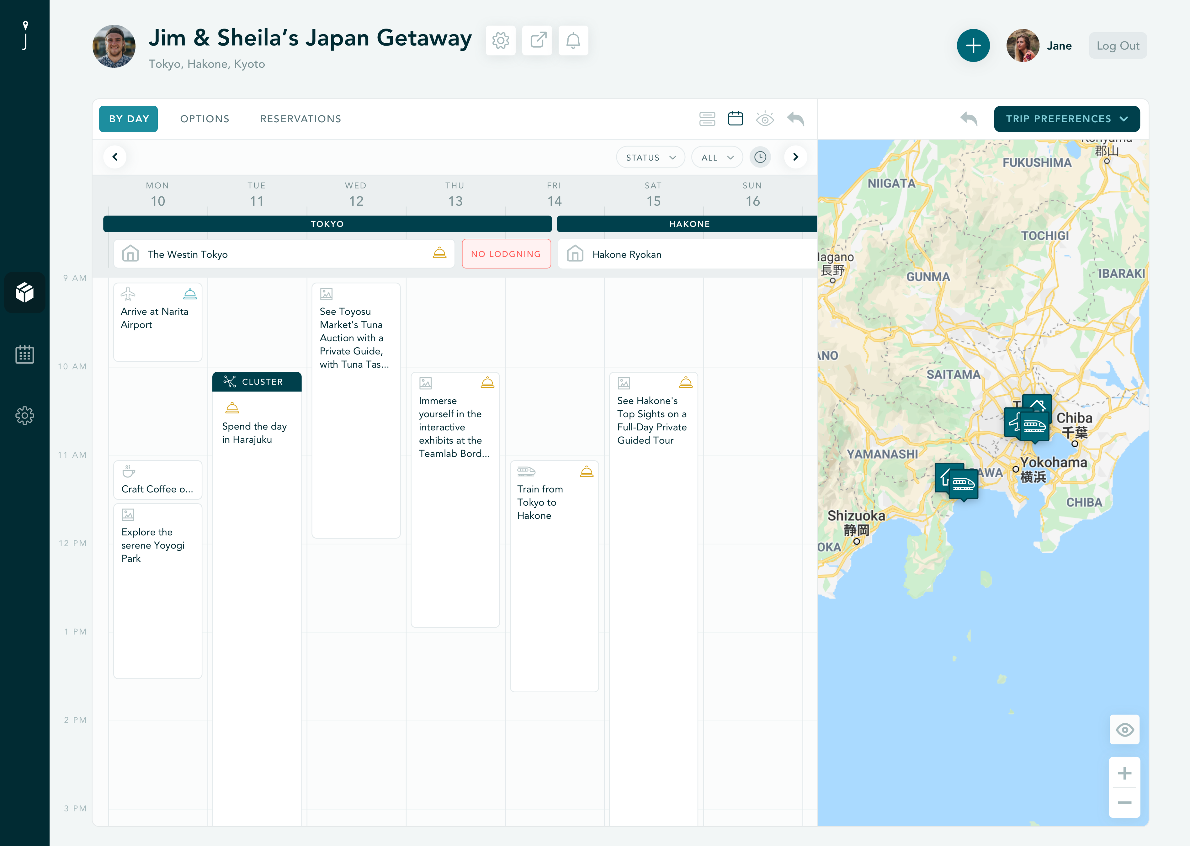 Trip designers enter the Journy platform and can immediately jump into a trip itinerary.
