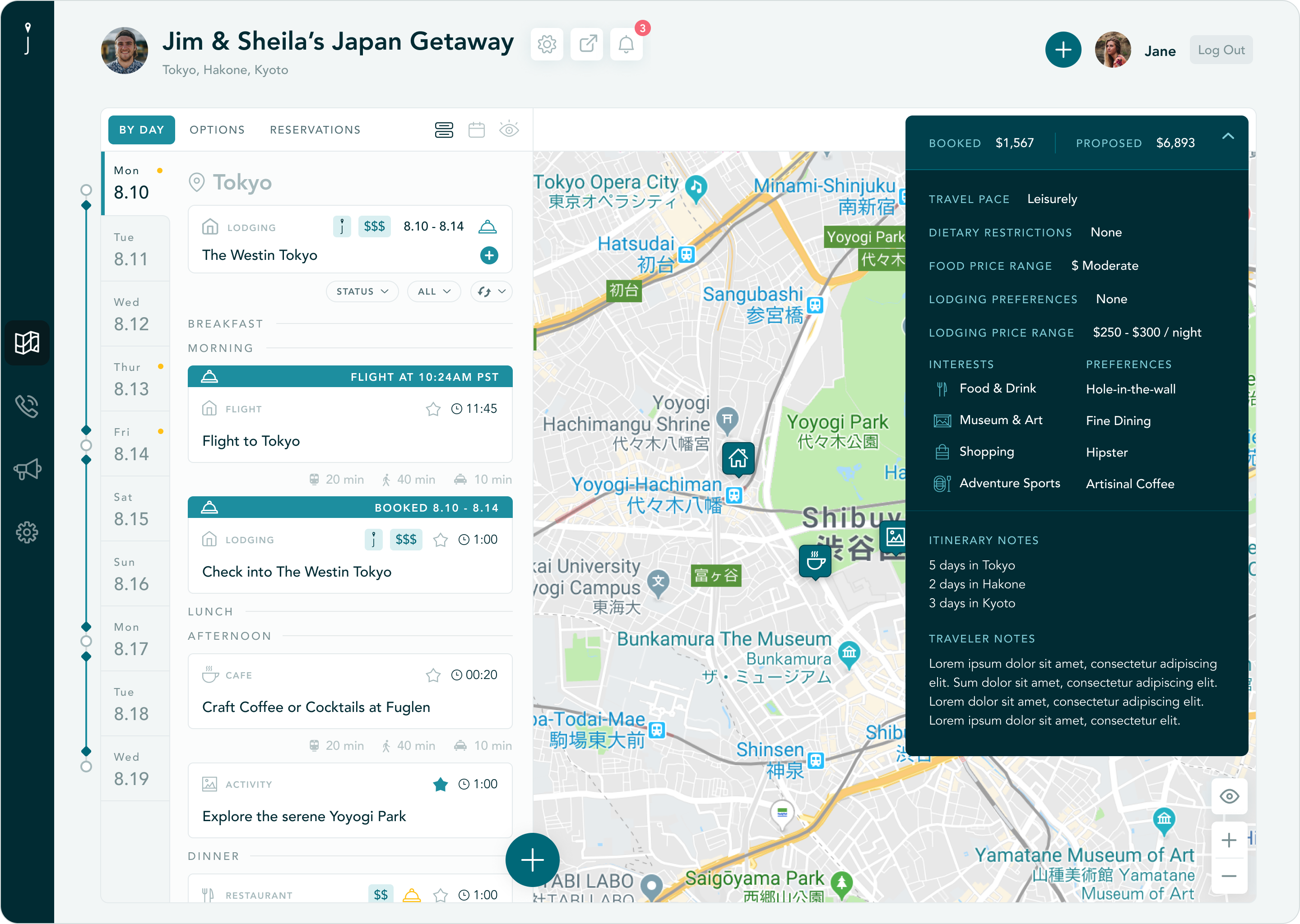Trip designers can easily reference the traveler’s interests and preferences, to create a truly personalized itinerary.